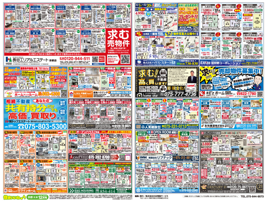 2023年12月に住まいいね♪京都 市内北版・南版 の最新号が発行されました!